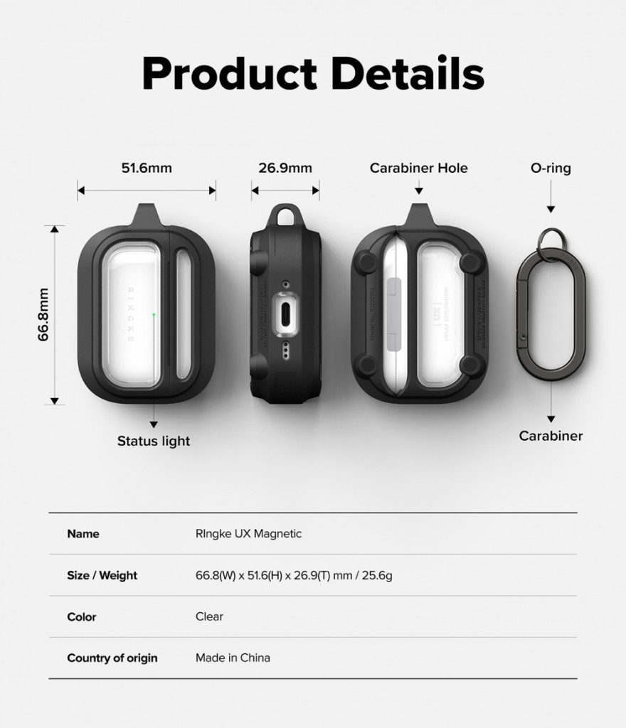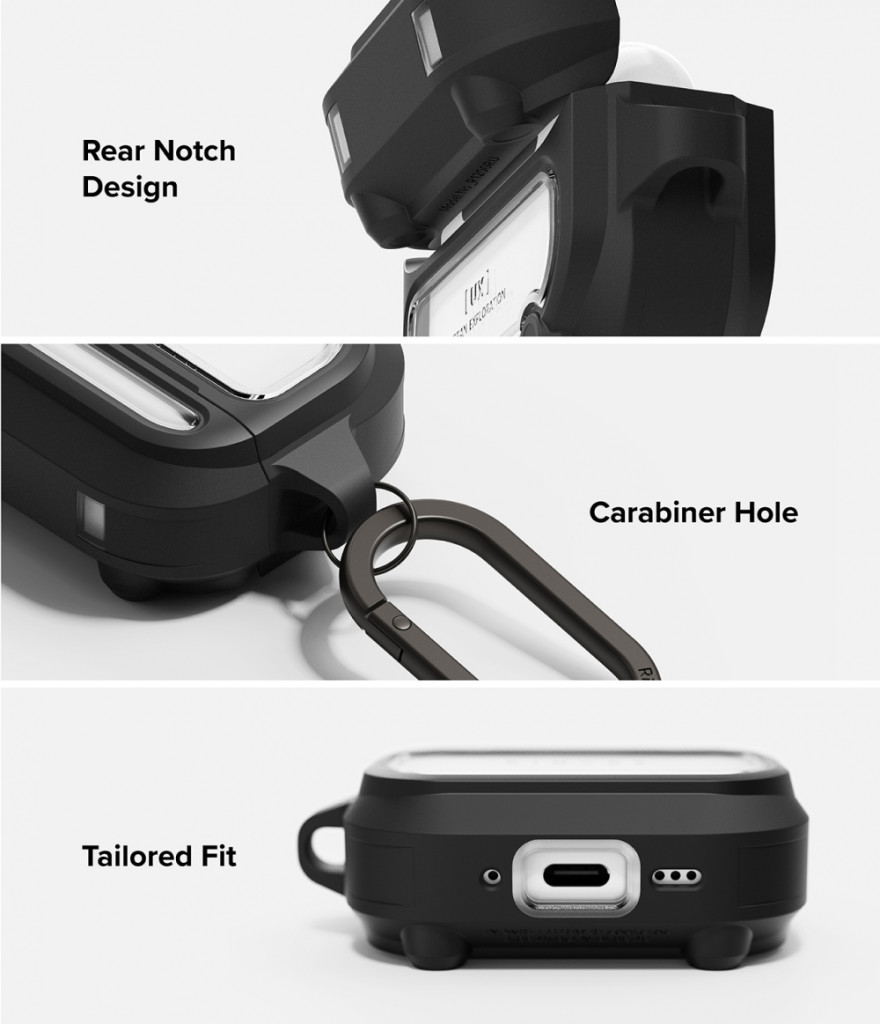 A jól átgondolt kialakítás kényelmes hozzáférést biztosít a tok hátsó széléhez, így könnyen nyitható és zárható, sérülésveszély nélkül. A beépített karabiner segítségével kényelmesen rögzíthetjük a tokot hátizsákhoz, övhöz vagy táskához, biztosítva a gyors hozzáférést és megelőzve az elvesztést. A precíz kivágások garantálják a töltőport és az állapotjelző LED teljes hozzáférését anélkül, hogy le kellene venni a tokot. A könnyű és vékony kialakítás kompakt méretet biztosít anélkül, hogy felesleges terhet jelentene.