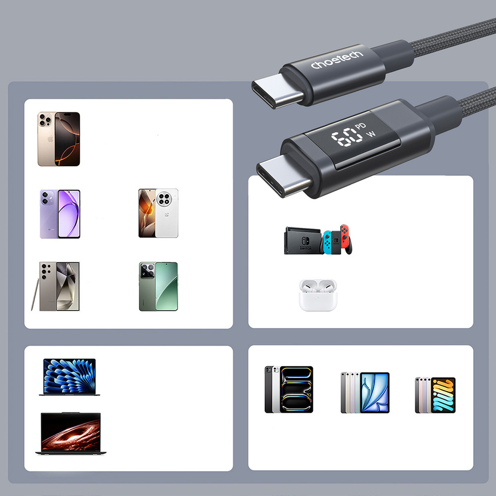 A Choetech kábele egy modern megoldás gyorstöltéshez és a stabil adatátvitelhez. Akár 60W-os teljesítményt is támogat, így okostelefonokhoz és tabletekhez egyaránt alkalmas. A beépített digitális kijelző valós időben mutatja az aktuális töltési teljesítményt, így teljes ellenőrzést biztosít a folyamat felett. A nejlon fonat növeli a tartósságot és a sérülésekkel szembeni ellenállást. Ez egy praktikus választás azok számára, akik mindennap megbízhatóságot és kényelmet várnak el.