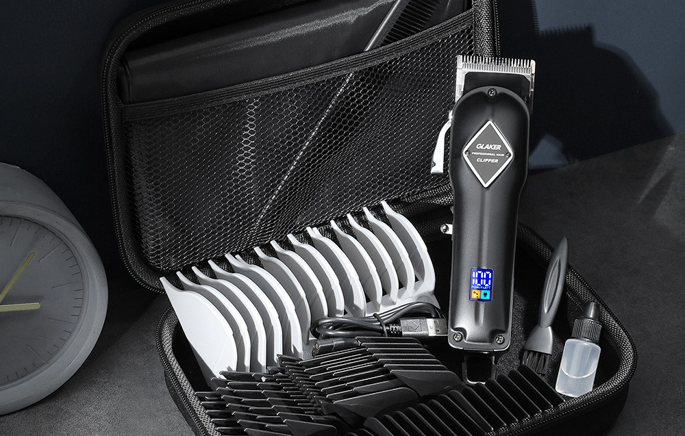 A Glaker terméke olyan kiegészítőkkel rendelkezik, amelyek átfogó módon gondoskodnak a megjelenésről. A GL-K11S mellett döntve egy hordtokot, pengeolajat, fésűt, kefét - a tisztításhoz - és egy USB-kábelt, valamint 15 db, a hajvágóra illeszthető fésűt (jobb, bal, 1,5 / 3 / 4,5 / 6 / 10 / 13 / 16 / 19 / 22 / 25 / 38 / 51 mm) kapunk, különböző hajhosszakhoz. A penge 0,5 mm-től 1,7 mm-ig állítható.