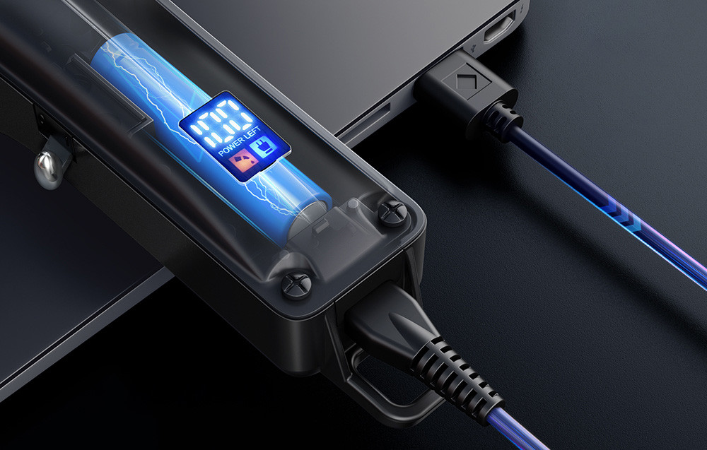 Praktikus LED-kijelzővel is rendelkezik, amely létfontosságú információkkal szolgál, beleértve az akkumulátor aktuális állapotát. Ez lehetővé teszi a készülék stratégiai töltését, hogy mindig készen álljon, amikor csak szükség van rá. A LED-kijelző jelzi a maradék energia százalékos arányát. Ha az akkumulátor töltöttségi szintje 5% alá csökken, a százalékos eredmény mellett egy piros ikon jelenik meg. A borotva emellett tájékoztat, ha pótolni kell az olajat, ebben az esetben szintén egy piros ikon jelenik meg, és a készülék ezt ráadásul hangjelzéssel is jelzi.