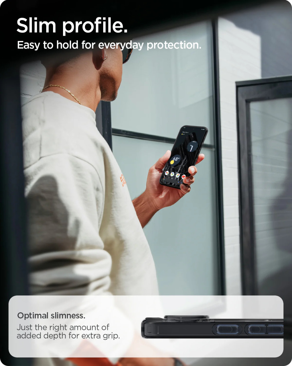 Spigen Ultra Hybrid MagFit tok, amely ötvözi a legjobb védelmet és esztétikát, így az okostelefonnak biztonságot és egyedi megjelenést  is biztosít. Egyedülálló hibrid szerkezetének (TPU + PC) köszönhetően egy tartós keretet és egy átlátszó panelt kombinál, így a telefon megőrzi eredeti kialakítását, miközben hatékonyan védve van a sérülésektől. A légpárnákkal megerősített sarkok hatékonyan elnyelik az ütéseket, így további védelmet nyújtanak egy ejtés esetén.