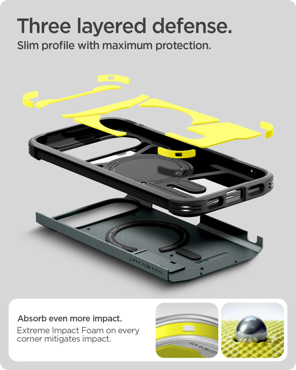 A Spigen Tough Armor MagFit sorozatú tok az elődmodell továbbfejlesztett változata. A tok mágneses gyűrűvel van ellátva, amely kompatibilis a MagSafe rögzítési és vezeték nélküli töltési rendszerrel, így biztosítva az Apple technológia gyors és egyszerű használatát.