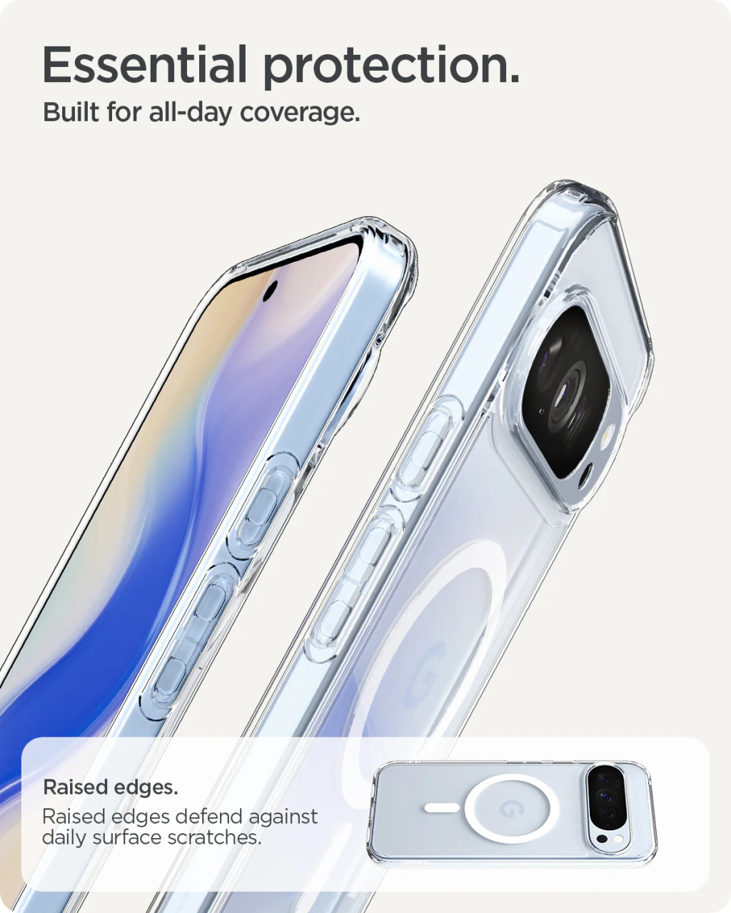 Spigen Ultra Hybrid MagFit tok, amely ötvözi a legjobb védelmet és esztétikát, így az okostelefonnak biztonságot és egyedi megjelenést  is biztosít. Egyedülálló hibrid szerkezetének (TPU + PC) köszönhetően egy tartós keretet és egy átlátszó panelt kombinál, így a telefon megőrzi eredeti kialakítását, miközben hatékonyan védve van a sérülésektől. A légpárnákkal megerősített sarkok hatékonyan elnyelik az ütéseket, így további védelmet nyújtanak egy ejtés esetén.