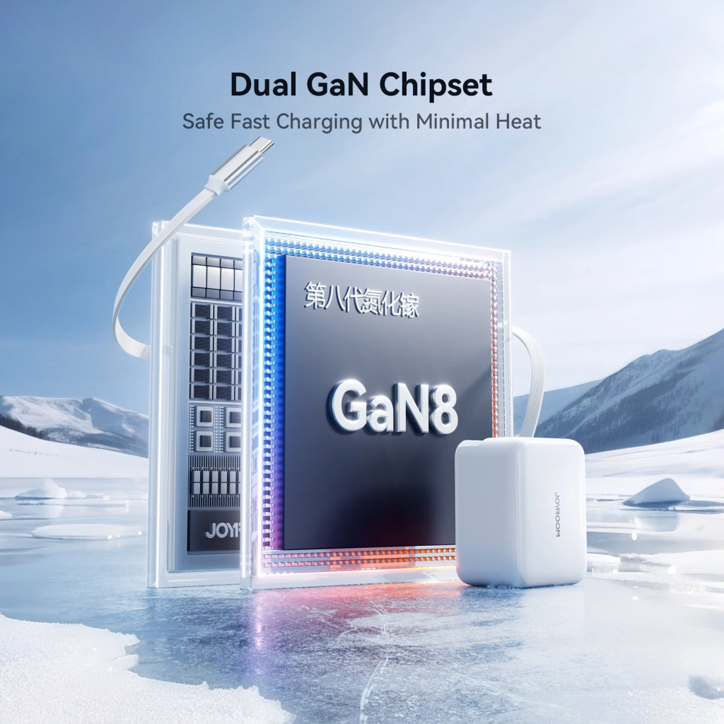 - GaN technológia: A kettős lapkakészlet gyors és stabil töltést biztosít minimális hőtermelés mellett.