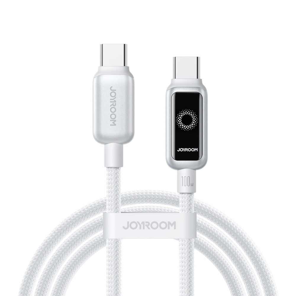 A Joyroom S-A55 StarFlight USB-C–USB-C kábele egy nagy teljesítményű, tartós és intelligens kábel, amelyet USB-C eszközök rendkívül gyors töltésére terveztek. Akár 100W teljesítményt is támogat, így okostelefonokhoz, táblagépekhez, ultrabookokhoz és powerbankokhoz egyaránt alkalmas. A teljes feltöltés utáni automatikus kikapcsolás funkció védi az akkumulátort, míg az intelligens feszültség- és áramerősség-szabályozás stabilizálja az áramellátást és megakadályozza a túlmelegedést. A LED-jelzőfény tájékoztat az aktuális töltési módról (gyorstöltés, csepptöltés). A fonott nylon, a cinkötvözetből készült fém csatlakozók és az ónozott réz mag kivételes tartósságot és ellenállást biztosítanak az intenzív használat során.