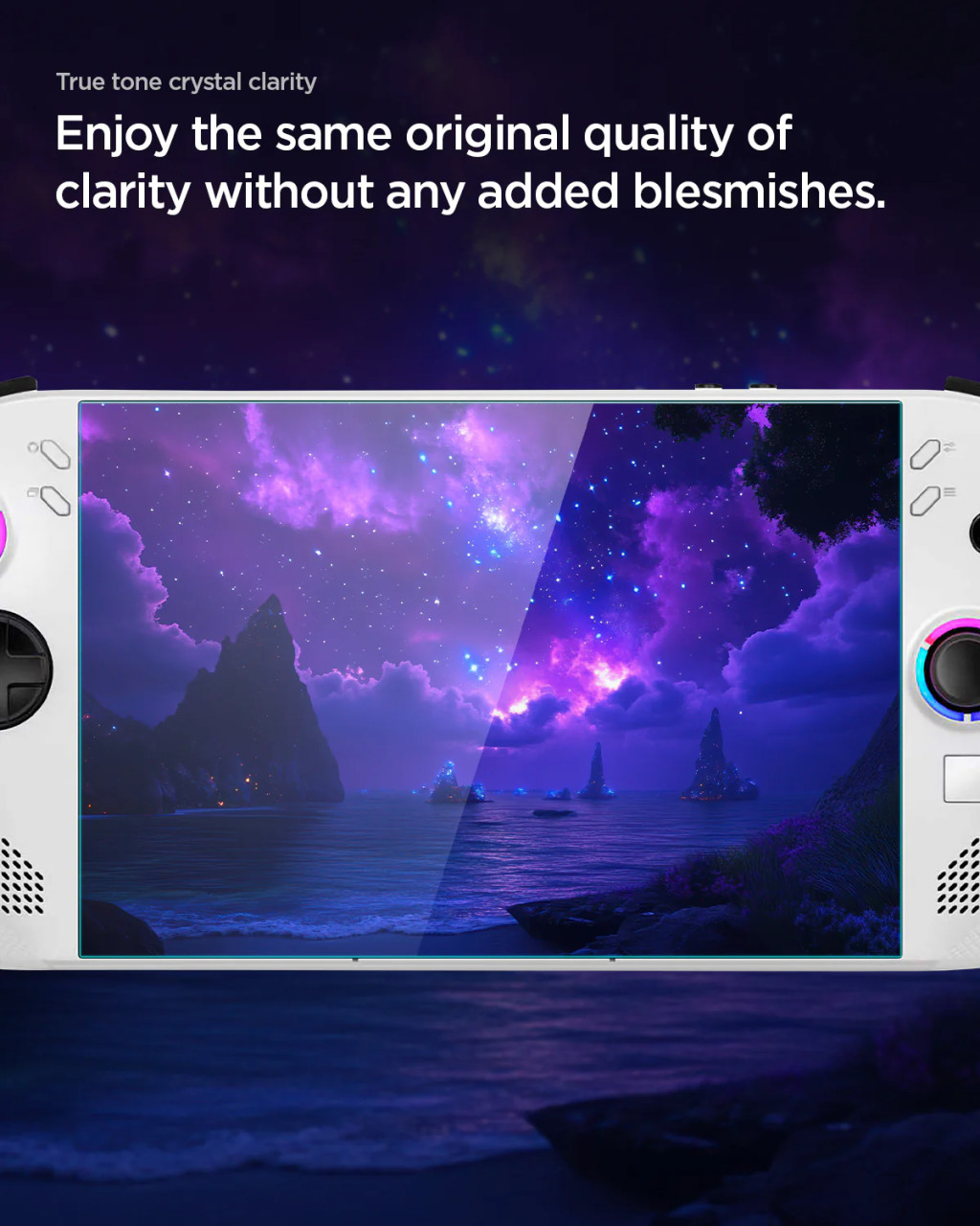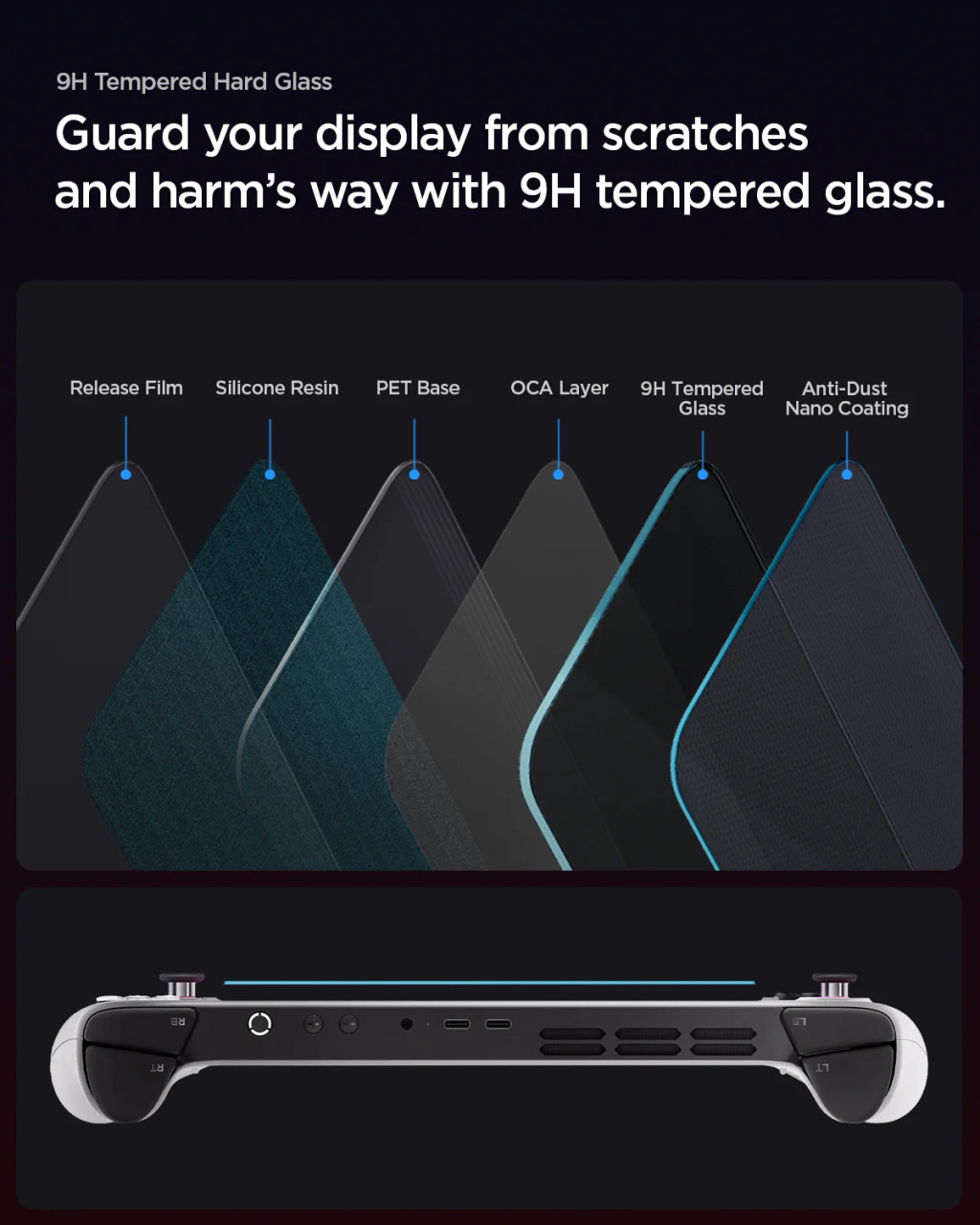 Kristálytiszta edzett üveg, amely tökéletesen reprodukálja a megjelenített színeket és nem befolyásolja az érintés érzékenységét. Megerősített, 0,2 mm vastag edzett üvegből készült, felületi keménysége (ellenállási szintje) 9H, így éles tárgyakkal (késekkel, kulcsokkal) érintkezve is rendkívül karcálló.