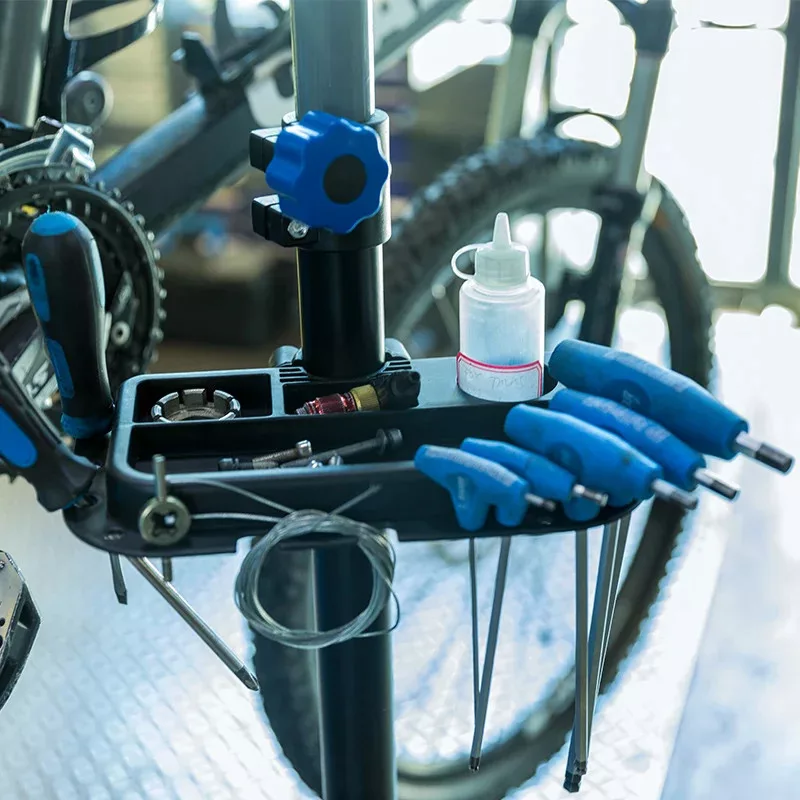 - Megkönnyíti a rend fenntartását. A beépített szerszámtartó megakadályozza a szerszámok és a leszerelt kerékpáralkatrészek elvesztését.