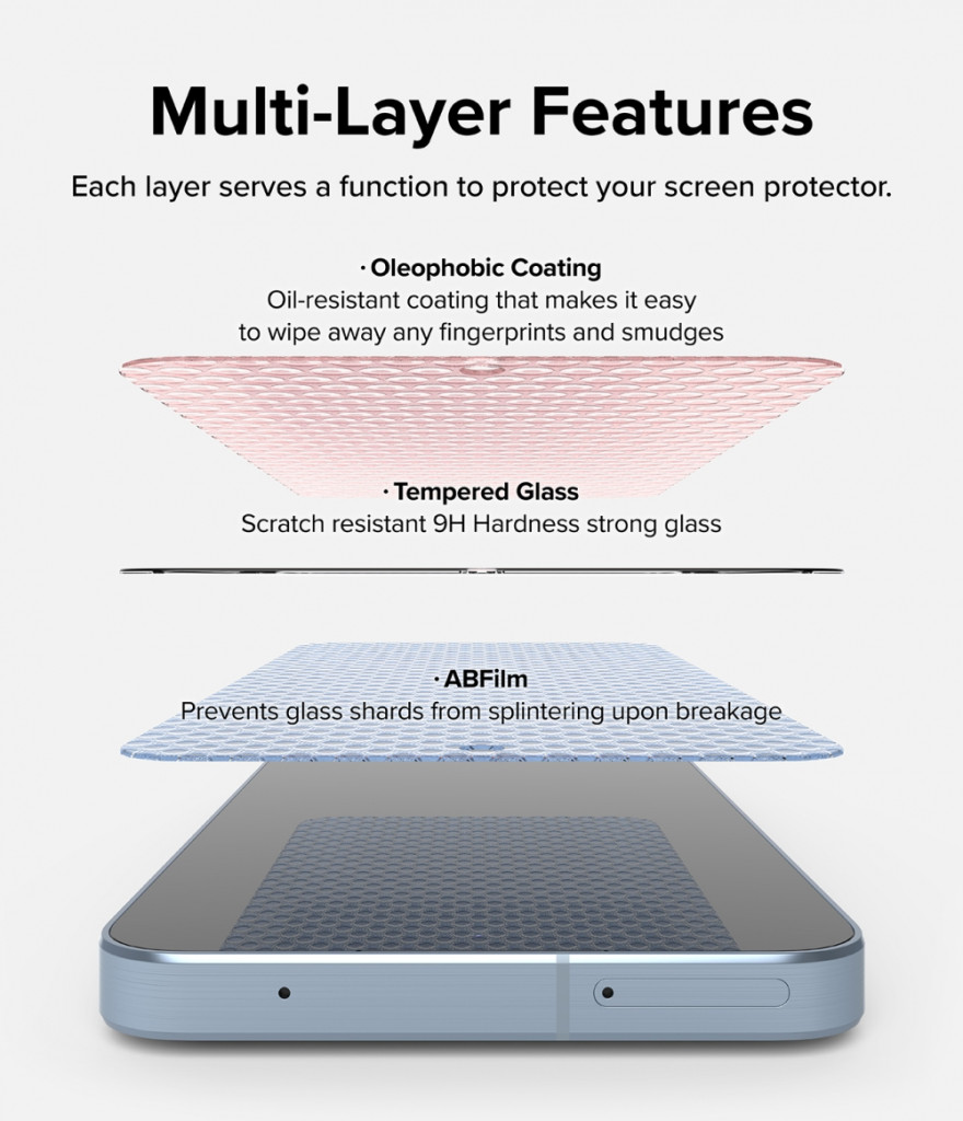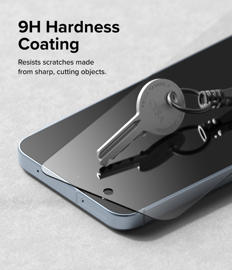 A Ringke kristálytiszta Easy Slide edzett üvege tökéletesen reprodukálja a megjelenített színeket és nem befolyásolja az érintésérzékenységet. Megerősített edzett üvegből készült, a nagy keménységnek (9H) köszönhetően karcálló, még éles tárgyakkal (késsel vagy kulcsokkal) való érintkezés esetén is.