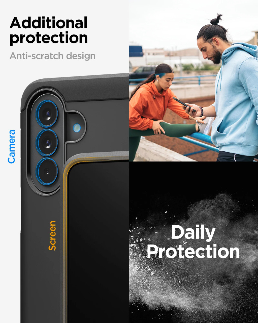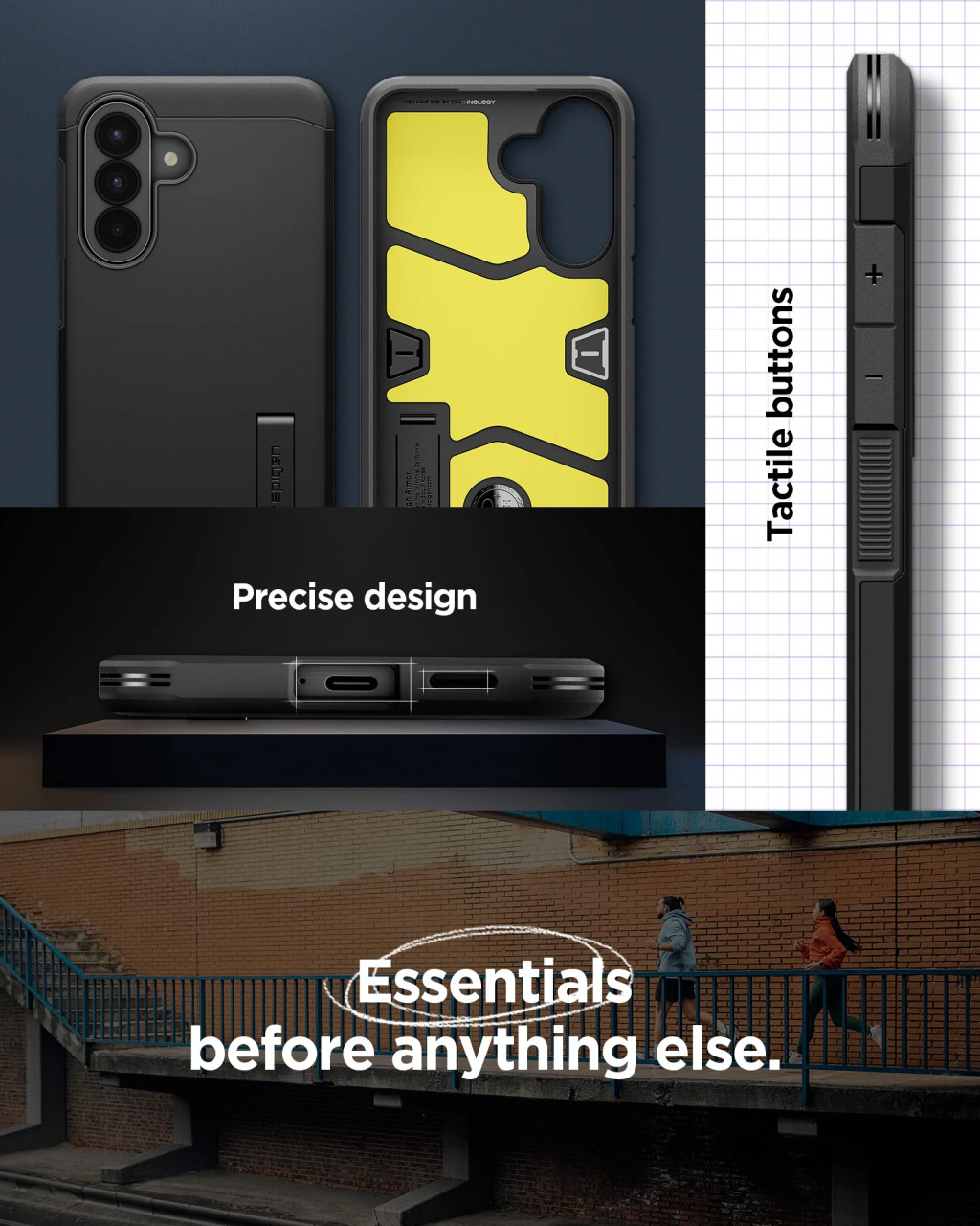 A tok tökéletesen illeszkedik és nem korlátozza a vezeték nélküli töltést. A kamera és a képernyő körüli, kissé megemelt kialakítás megvédi ezeket az elemeket a karcolásoktól, mivel a telefont kissé a sík felület fölé emeli. Gombvédővel és portkivágásokkal is rendelkezik.
