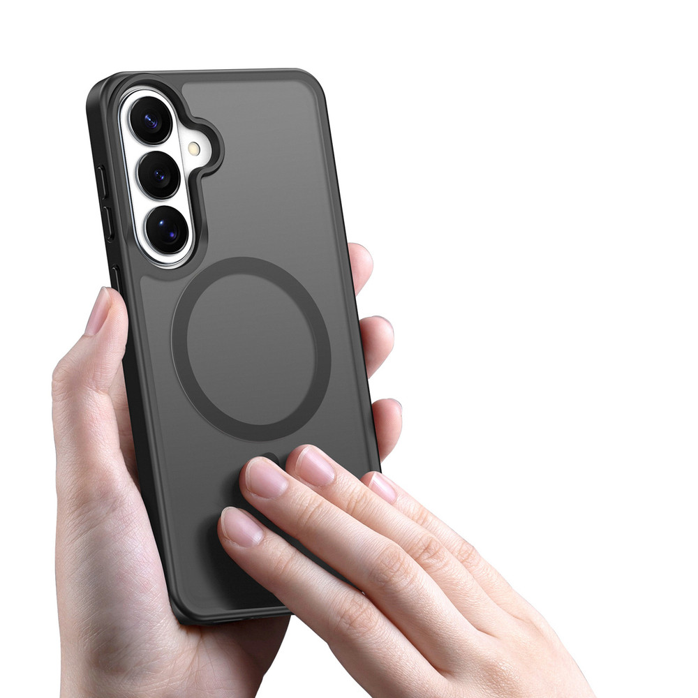 A Dux Ducis Yind egy elegáns és tartós tok, amelyet a Samsung S26 Plus védelme és kényelme szem előtt tartva terveztek. A matt polikarbonát PC hátsó panel és a rugalmas TPU keret biztos fogást és ellenállást nyújt a karcolásokkal és ujjlenyomatokkal szemben. A beépített 38 mágnes biztosítja a MagSafe kompatibilitást és a mágneses kiegészítők stabil rögzítését. A négy sarokban található légpárnák segítenek csökkenteni a leejtések és ütések hatását. Tartós és esztétikus védelmet nyújt klasszikus fekete kivitelben.