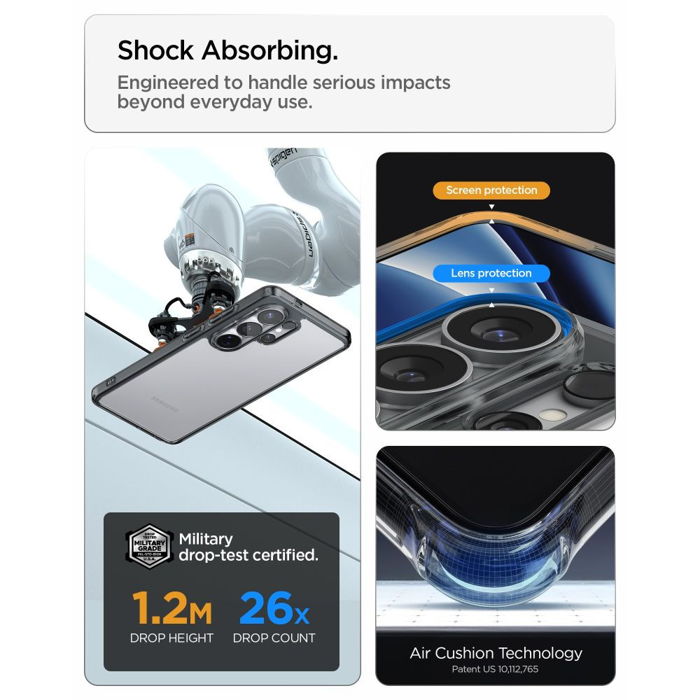 A Spigen Ultra Hybrid tok minimalista kialakítást és kiváló védelmet ötvöz. Tartós, rugalmas TPU anyagból készült, mely biztonságosan körülveszi az egész készüléket és kiváló ütéselnyelő képességgel rendelkezik. Mindezt erős polikarbonát panel egészíti ki, amely védi a készüléket karcolásoktól és megerősíti a tok szerkezetét. A termék tökéletesen illeszkedik, teljes mértékben funkcionális, nem korlátozza a külső portokhoz való hozzáférést és hatékonyan védi a telefont eséskor. Az Ultra Hybrid tökéletes védelmi megoldás, miközben minimális súlyú és vastagságú marad.