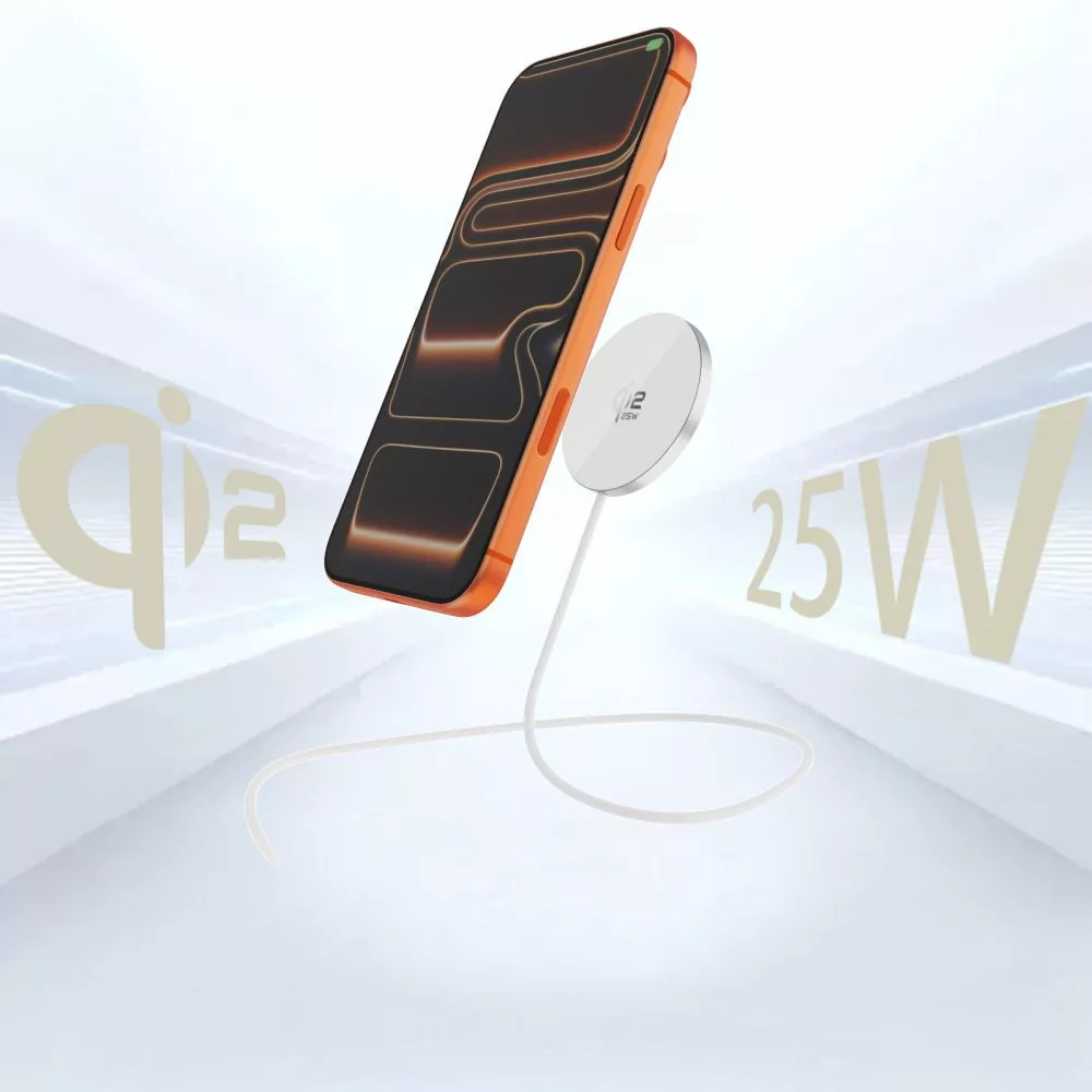 A Qi2.2 szabvány teljes kompatibilitást garantál számos eszközzel - a MagSafe-et támogató okostelefonokkal, a szabványos Qi vezeték nélküli töltéssel, valamint a 7,5W-os (iPhone) és a 10–15W-os gyorstöltéssel rendelkező modellekkel. A 25W-os teljesítmény a legmagasabb Qi2.2 profilt támogató eszközök számára elérhető, ami a szabványos vezeték nélküli töltőkhöz képest jelentősen rövidebb töltési időt jelent.