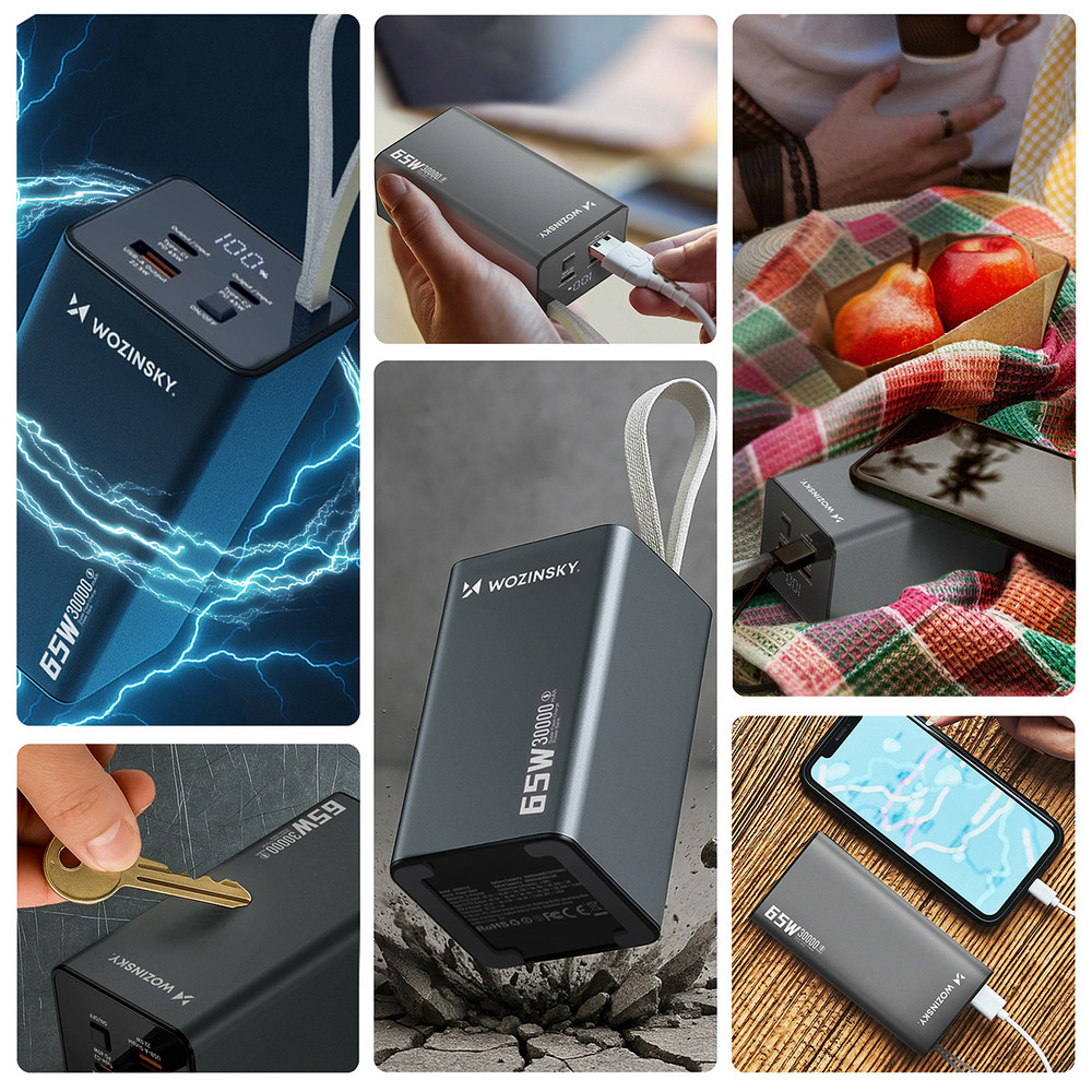Megbízható, hatékony powerbank, amely egyszerre tudja tölteni a laptopot, okostelefont és más eszközöket. A Wozinsky K65+ egy erőteljes, 30000mAh-s áramforrás, amely hosszú távú energiát biztosít útközben, a munkahelyen és minden nap. A PD 65W technológiával még notebookokat is lehet vele tölteni, az intelligens energiamenedzsment rendszer pedig gondoskodik az eszközök biztonságáról. Három port - két USB-C és egy USB-A - teszi lehetővé, hogy egyszerre több eszközt is tápláljon, míg a digitális kijelző tájékoztat a fennmaradó energiaszintről. A masszív szerkezet és a modern dizájn ideális választássá teszi a powerbankot az igényes felhasználók számára.