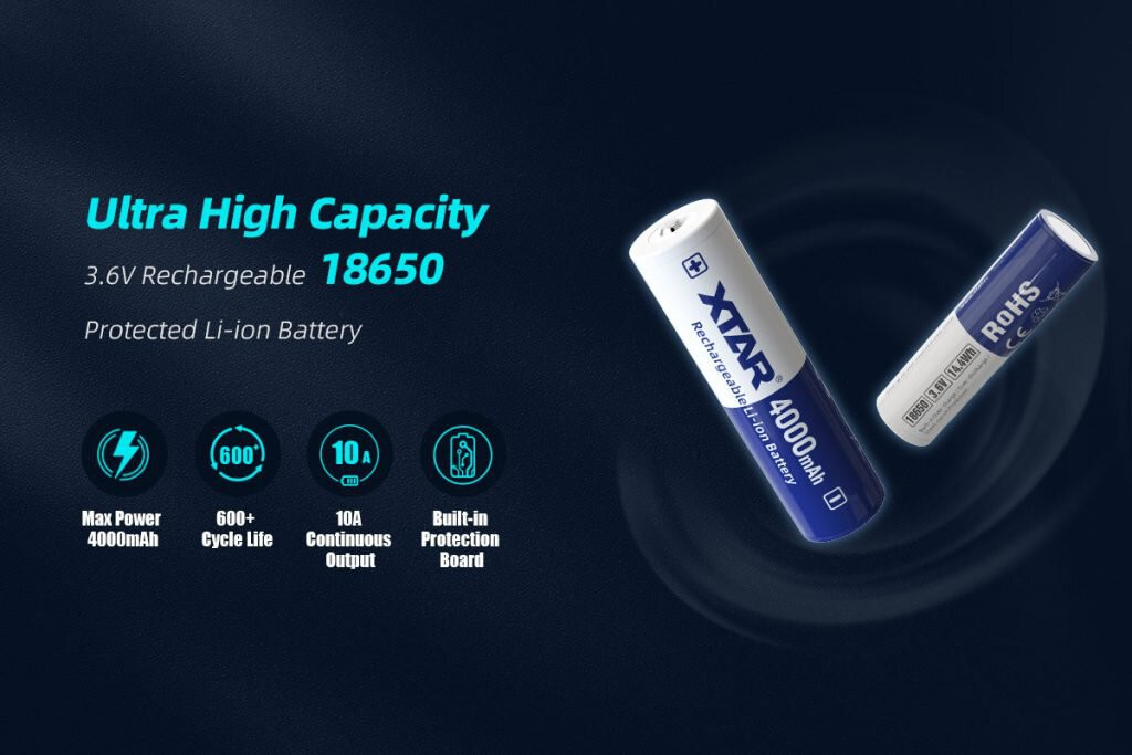 Xtar 18650 Li-Ion akkumulátor, 3,6V, 4000mAh, rövidzár, túltöltés, túlmerítés elleni védelemmel.