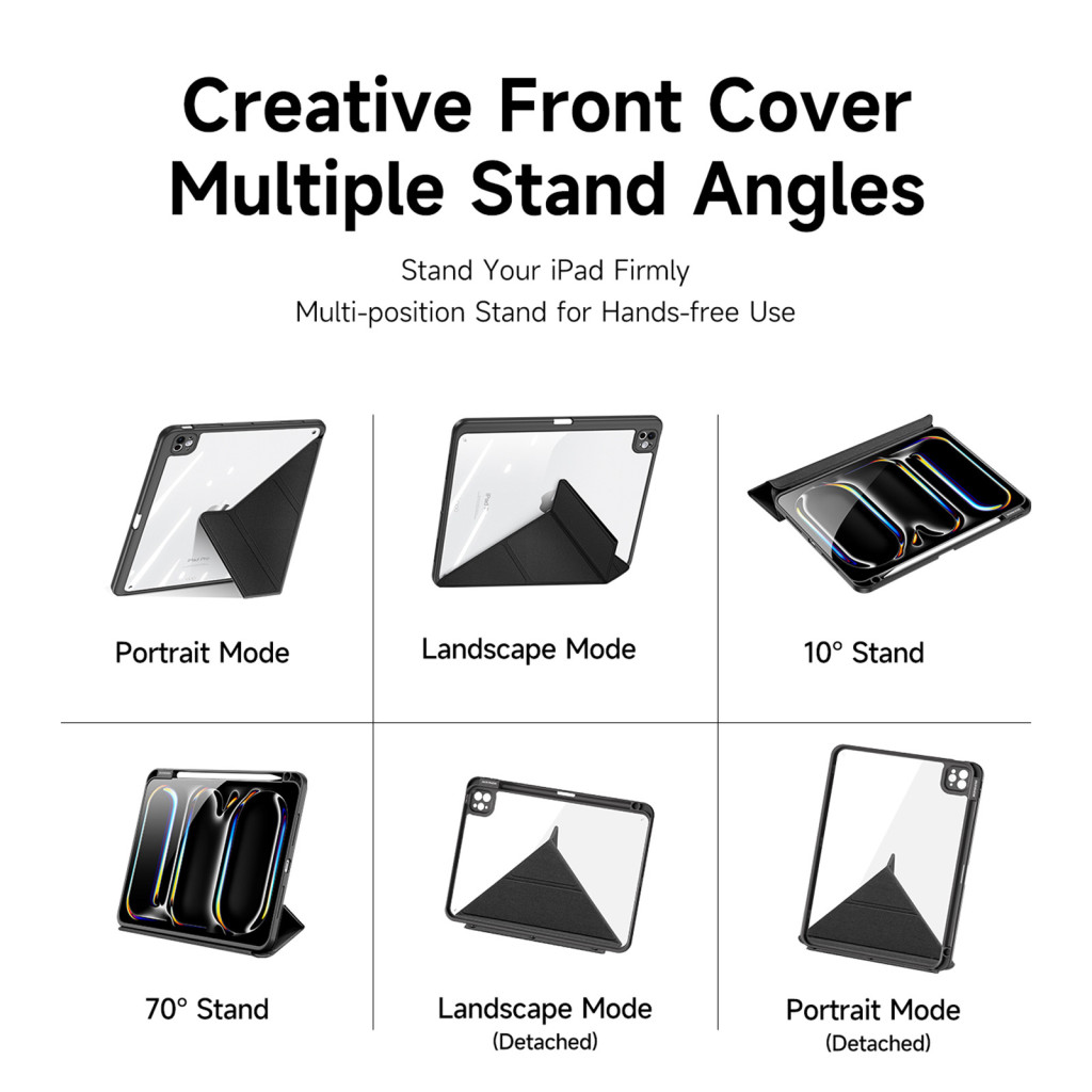 - Kényelmes állvány funkció: az elülső fedél kreatív kialakításának köszönhetően a táblagépet különböző szögekben helyezhetjük el - tökéletes filmnézéshez és munkához.