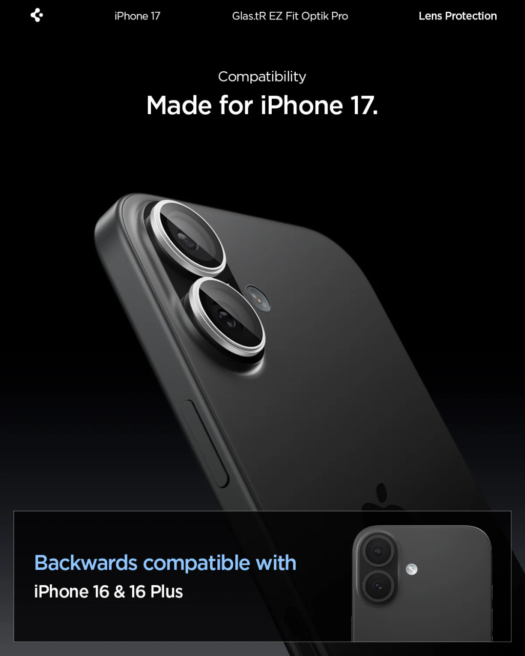 iPhone 16 / 16 Plus / 17 Lencsevédő - Spigen Glas.tR EZ Fit Optik Pro - Ezüst x 2 db