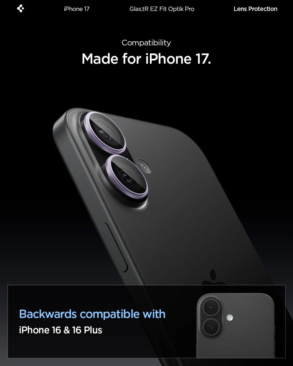 iPhone 16 / 16 Plus / 17 Lencsevédő - Spigen Glas.tR EZ Fit Optik Pro - Lila x 2 db