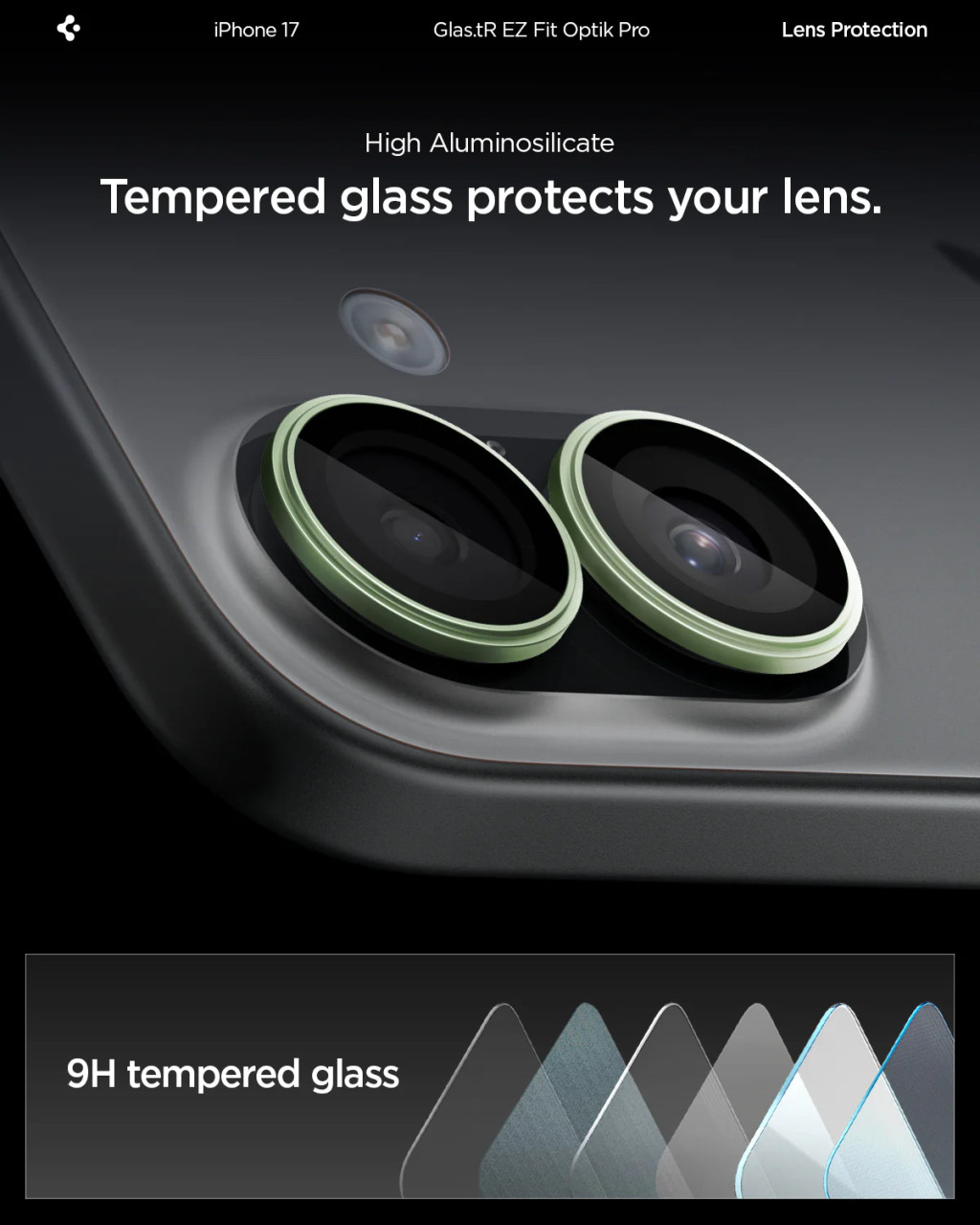 iPhone 16 / 16 Plus / 17 Lencsevédő - Spigen Glas.tR EZ Fit Optik Pro - Zöld x 2 db
