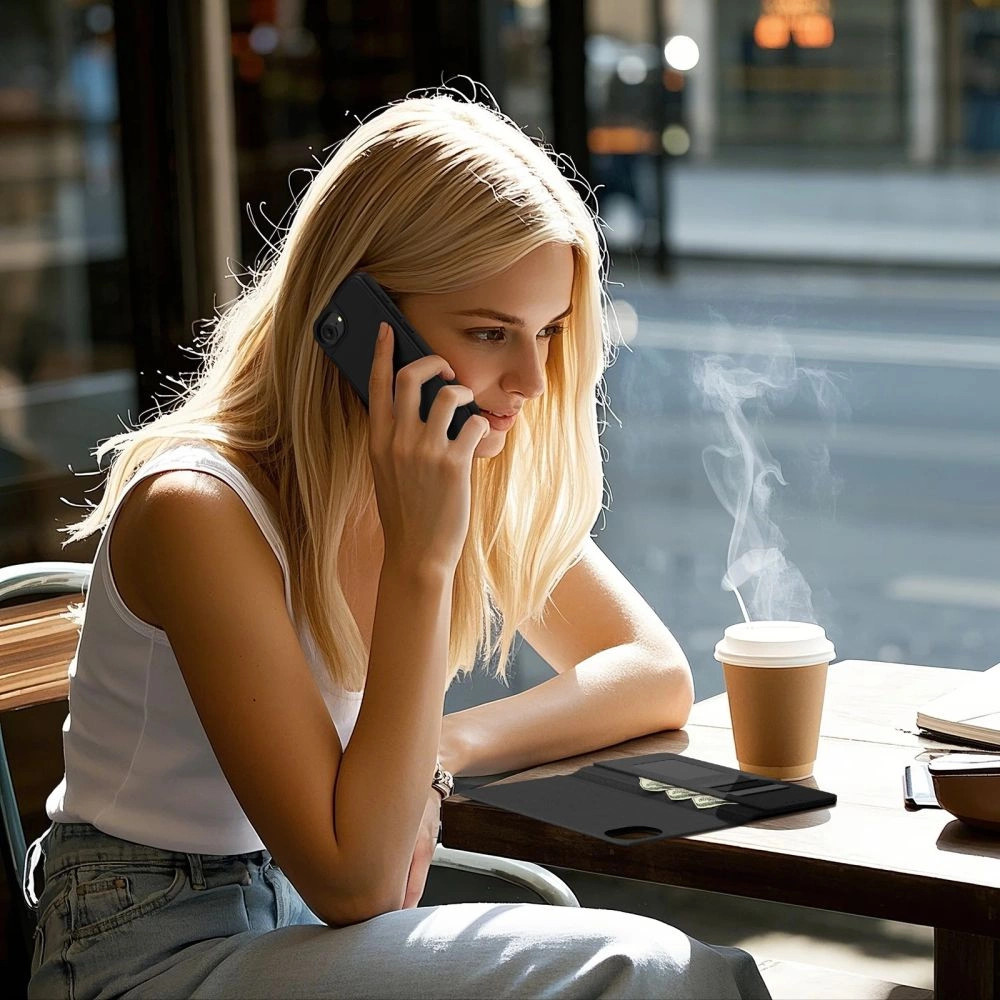 Egy másik előnye az állvány funkció, amelynek köszönhetően a felhasználó szabadon nézhet filmeket, videohívásokat használhat vagy böngészhet tartalmat fekvő módban, anélkül, hogy a telefont a kezében kellene tartania. A tok stabil támogatást nyújt a telefonnak, ami növeli a használat kényelmét.