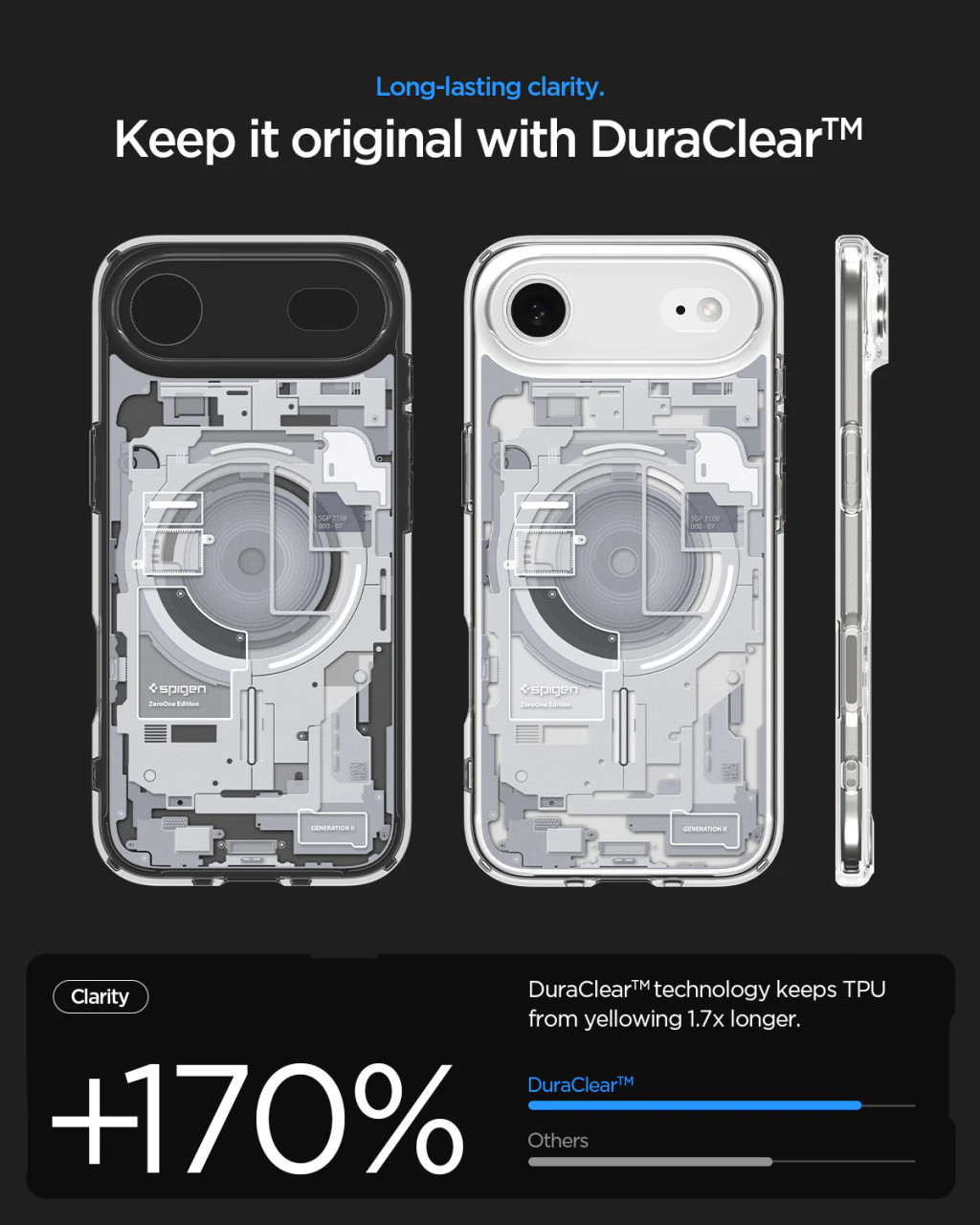 A Spigen Ultra Hybrid tokja, amely egyesíti a minimalista dizájnt és a legmagasabb szintű védelmet. Tartós, rugalmas TPU anyagból készült, amely biztonságosan körülveszi az egész készüléket, így kiváló ütéscsillapítást biztosít. Emellett kiegészül egy erős polikarbonát panellel, amely véd a karcolások ellen és erősíti a szerkezetet. A kamera vezérlőgombját vékony TPU réteg borítja, amely védelmet nyújt a funkcionalitás megőrzése mellett.