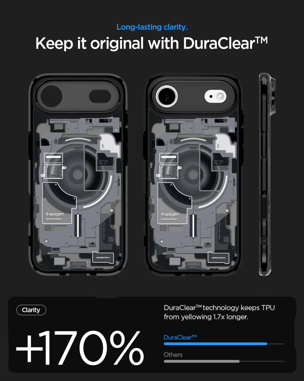 A Spigen Ultra Hybrid tokja, amely egyesíti a minimalista dizájnt és a legmagasabb szintű védelmet. Tartós, rugalmas TPU anyagból készült, amely biztonságosan körülveszi az egész készüléket, így kiváló ütéscsillapítást biztosít. Emellett kiegészül egy erős polikarbonát panellel, amely véd a karcolások ellen és erősíti a szerkezetet. A kamera vezérlőgombját vékony TPU réteg borítja, amely védelmet nyújt a funkcionalitás megőrzése mellett.