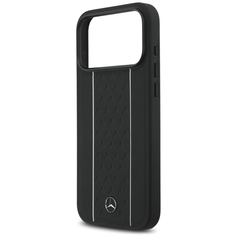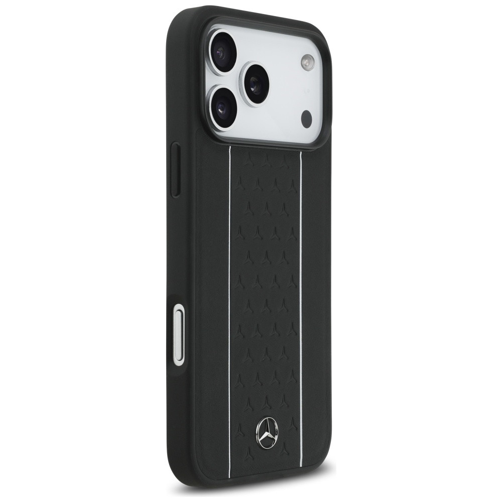 iPhone 17 Pro Max Tok - Mercedes Leather Star Pattern Stripes MagSafe - Fekete