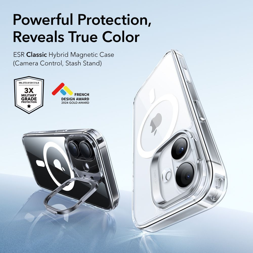 Az ESR Classic Hybrid Kickstand HaloLock Magsafe tokja magas szintű védelmet nyújt, mely mellett tökéletesen kiemeli az okostelefon eredeti megjelenését.