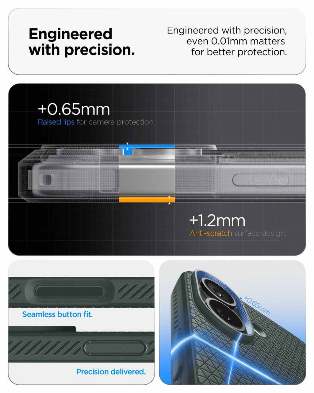 A Spigen Liquid Air egy elegáns és funkcionális védőtok, amely nemcsak stílusos megjelenést, hanem szilárd védelmet is nyújt  az okostelefonnak. Vékony kialakításának köszönhetően tökéletesen illeszkedik a kézbe, minimalista kialakítása pedig azt jelenti, hogy a telefon megőrzi eredeti esztétikáját. Tartós és ütésálló TPU anyagból készül, ami növeli a tapadást és a használat kényelmét.