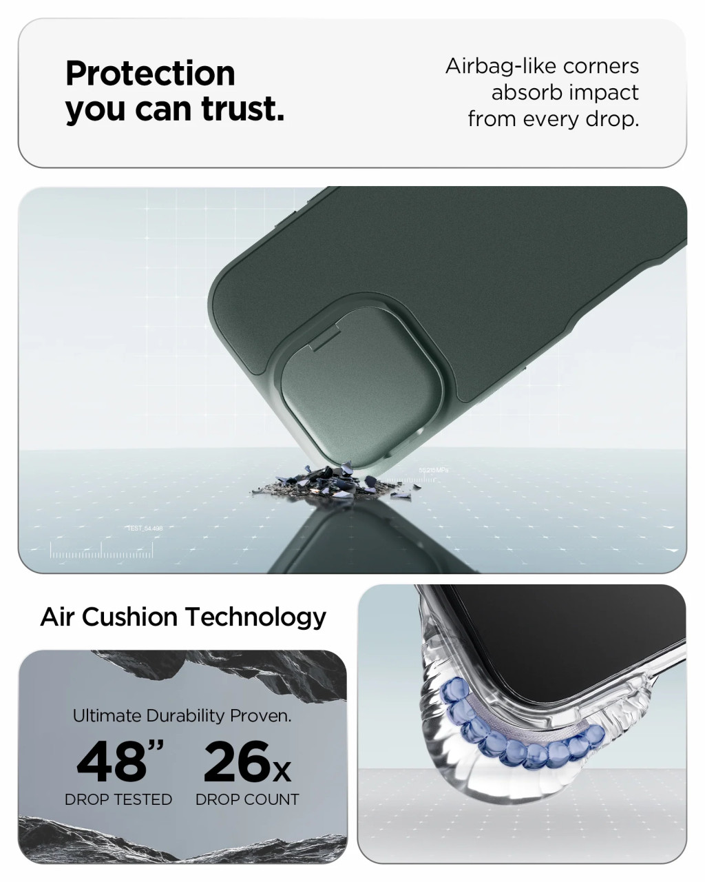 • Katonai szintű ütésvédelem az Air Cushion Technology technológiának köszönhetően.