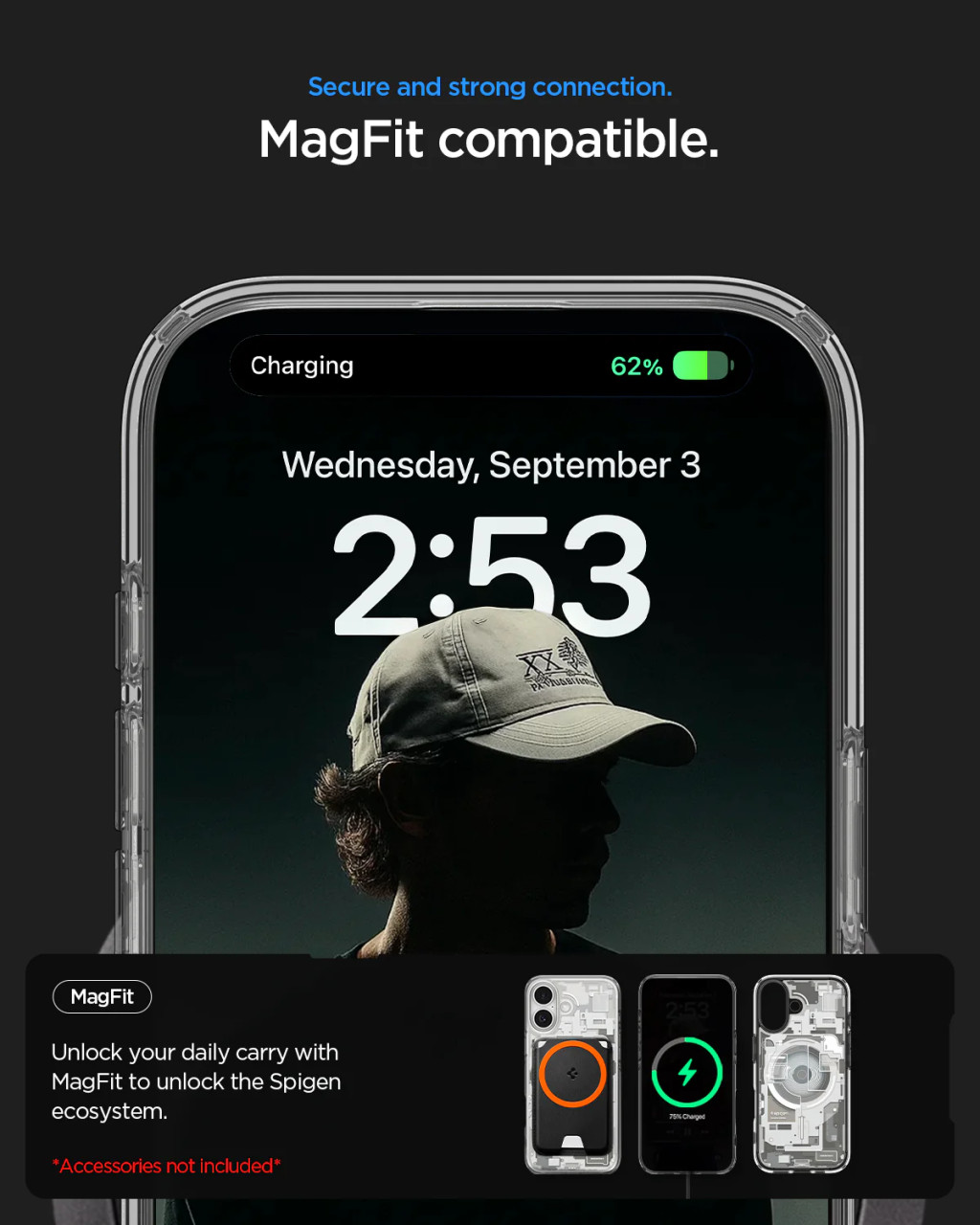 A tok a MagSafe vezeték nélküli technológiával kompatibilis gyűrűvel van ellátva, mely biztosítja a maximális töltési hatékonyságot és a gyors, egyszerű csatlakoztatást minden MagSafe funkcióval rendelkező tartozékhoz.